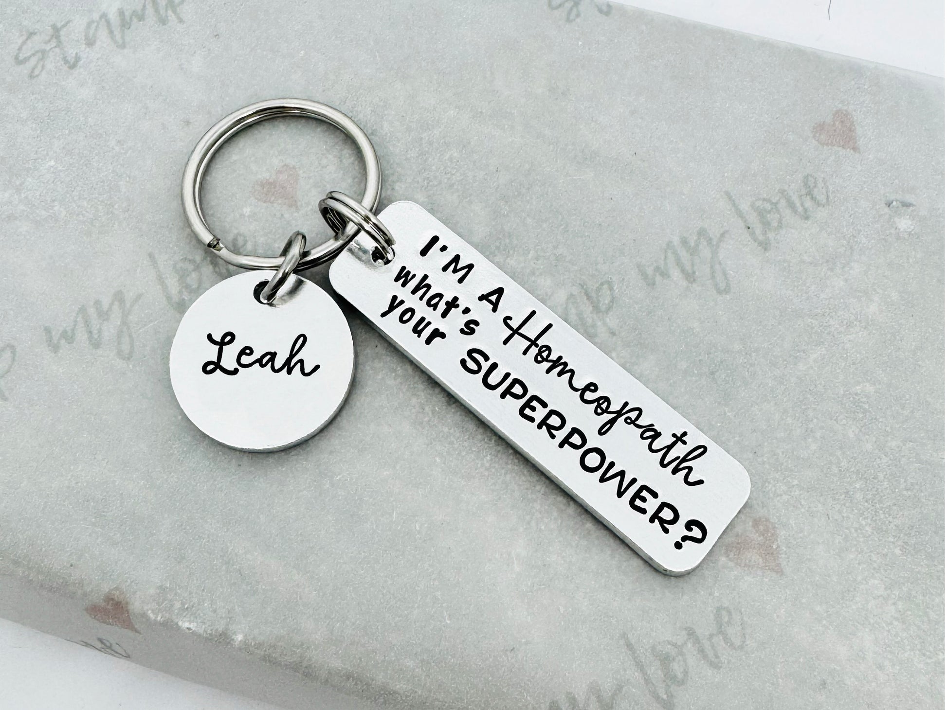 This personalised superpower keyring is hand-stamped with the phrase