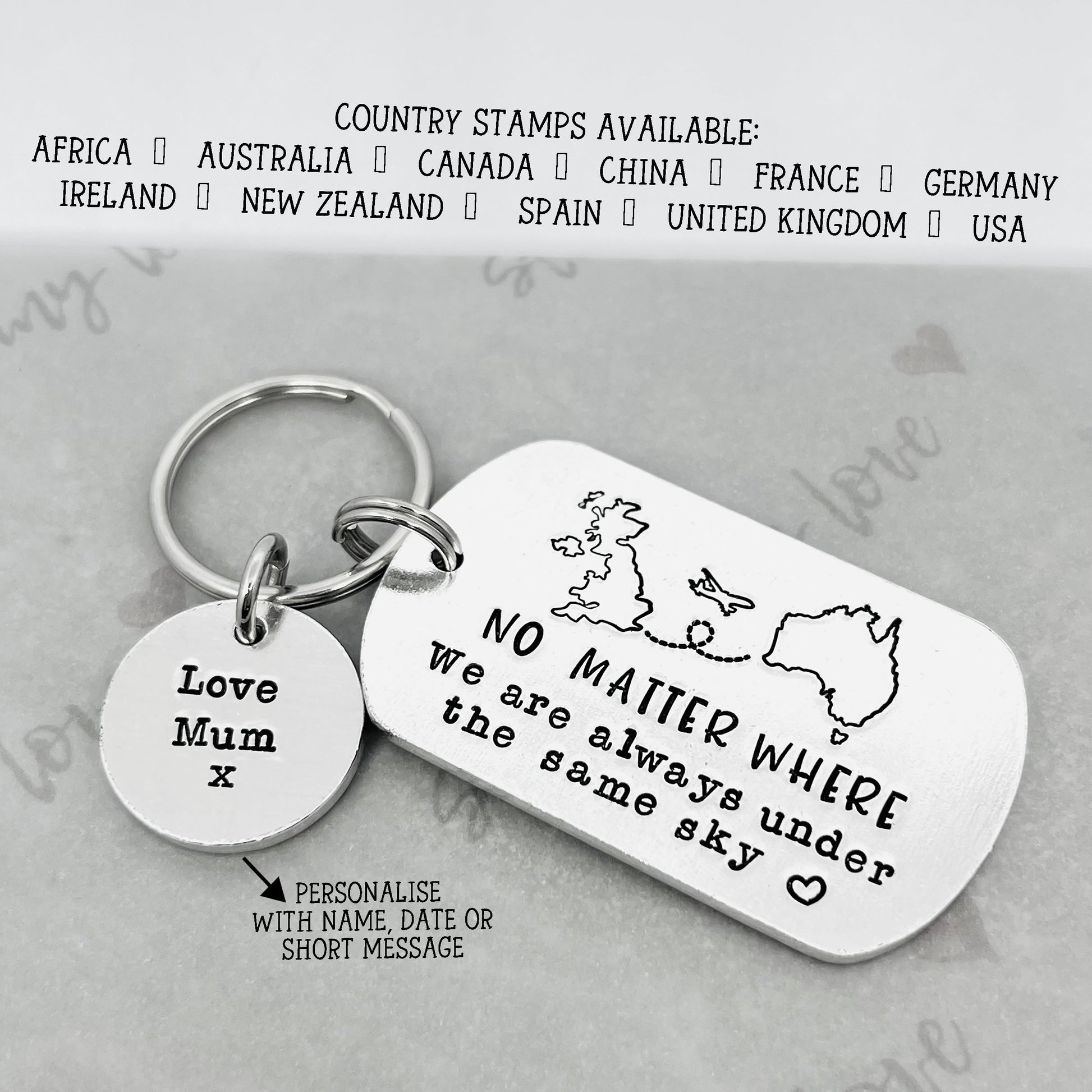 This hand stamped metal keyring is the perfect accessory for anyone embarking on a journey, whether it be travelling, backpacking, or moving to a new country. This unique keyring makes a thoughtful gift for someone about to emigrate, reminding them of home wherever they go. The durable metal design ensures that this keyring will withstand the wear and tear of any adventure, making it a practical and sentimental keepsake for the wanderer in your life