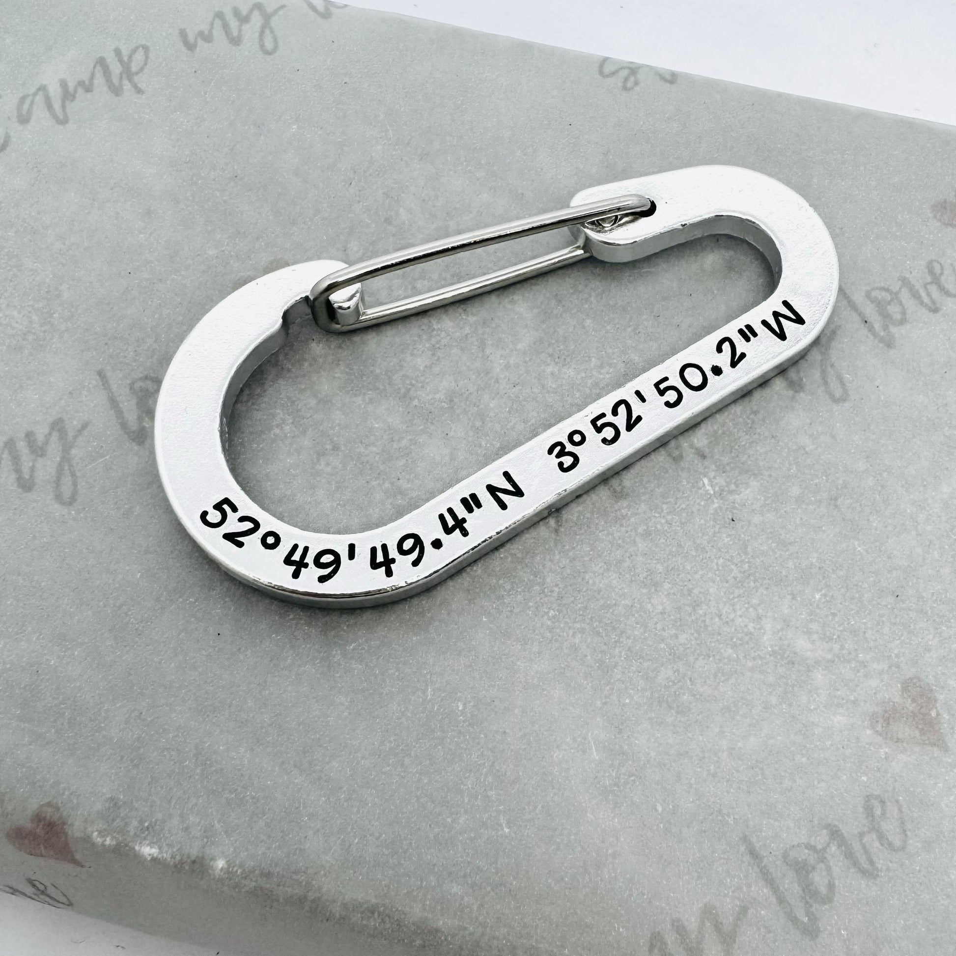 Capture a special place forever with this hand-stamped coordinates keyring, personalised with the exact location that means the most to you. Whether it’s where you met, your first home, your favourite holiday spot, or a meaningful memory, this sleek aluminium carabiner keyring keeps that moment close wherever you go.